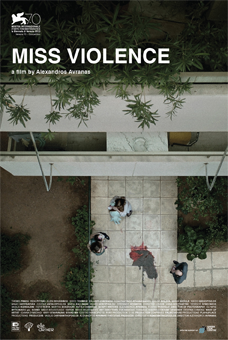 Kuten jokaisesta elokuvasta pyörivästä synopksiksesta, mainoksesta, trailerista, esitteestä, julisteesta tai vessakirjoituksesta on enemmän tai vähemmän käynyt ilmi: Miss Violence alkaa syntymäpäiväjuhlista, joissa – ilonsa huipulla oleva tyttö – kävelee kameran eteen, kävelee parvekkeen kaiteen eteen, nousee ylös ja hyppää alas!