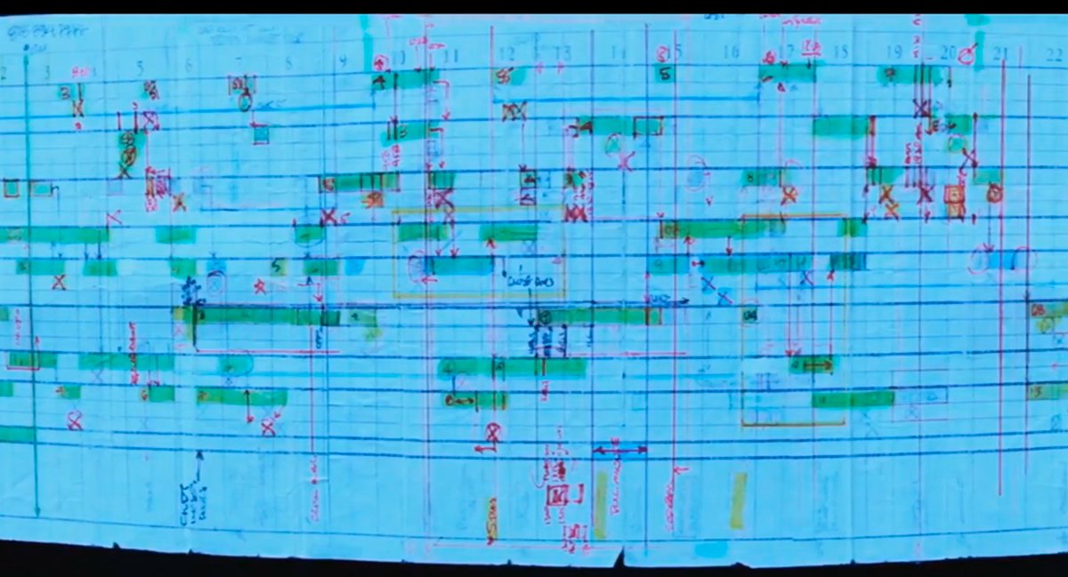 Night Trapin kuvausten aikaisessa prosessikaaviossa näkyy eri tapahtumien aikajanat. Night Trap: 25th Anniversary Edition (2017)