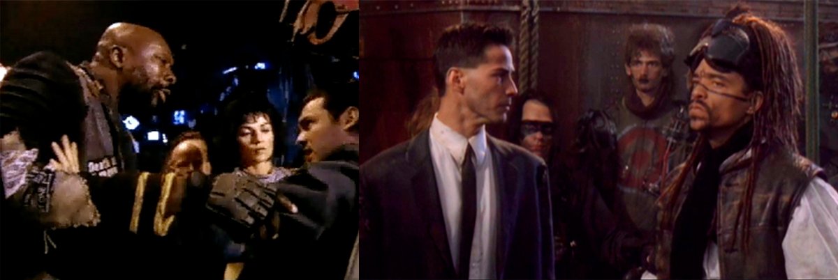Kuvassa vasemmalla Johnny Mnemonicin FMV-versio, oikealla tunnetumpi elokuvaversio